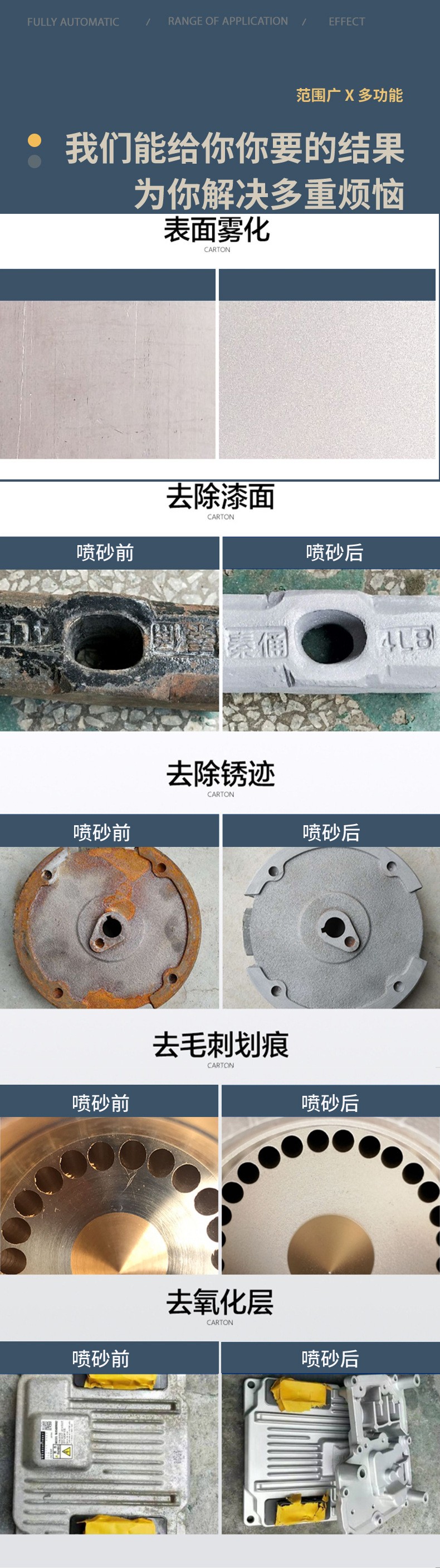 “鑫百通”专业制造销售:表面处理核心产品--““鑫百通XBTONG”牌”环保自动喷砂机、环保型喷砂房、环保型高中档抛丸机、配套直销各类机器配套零配件、易损件耗材、喷砂、抛丸磨料;同时为广大客户配套国内外优质螺杆式空压。 是一家专业从事喷砂机、毛边机、抛光机等表面处理设备的生产厂家。集设计开发-生产-销售-服务为一体.