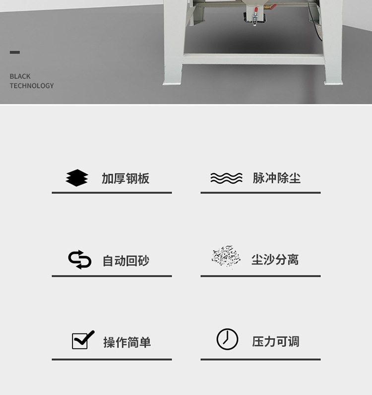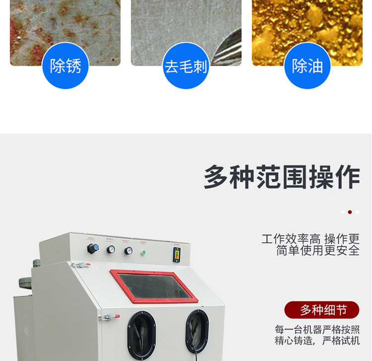 7. 喷砂机金属零件的基本不受损坏,尺寸精度不会改变;