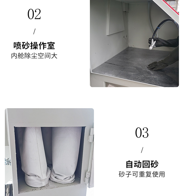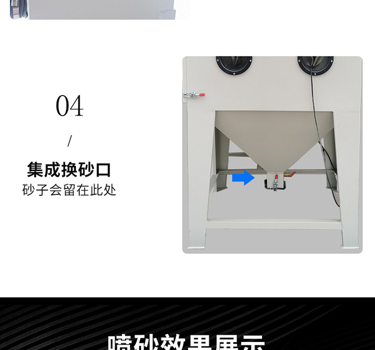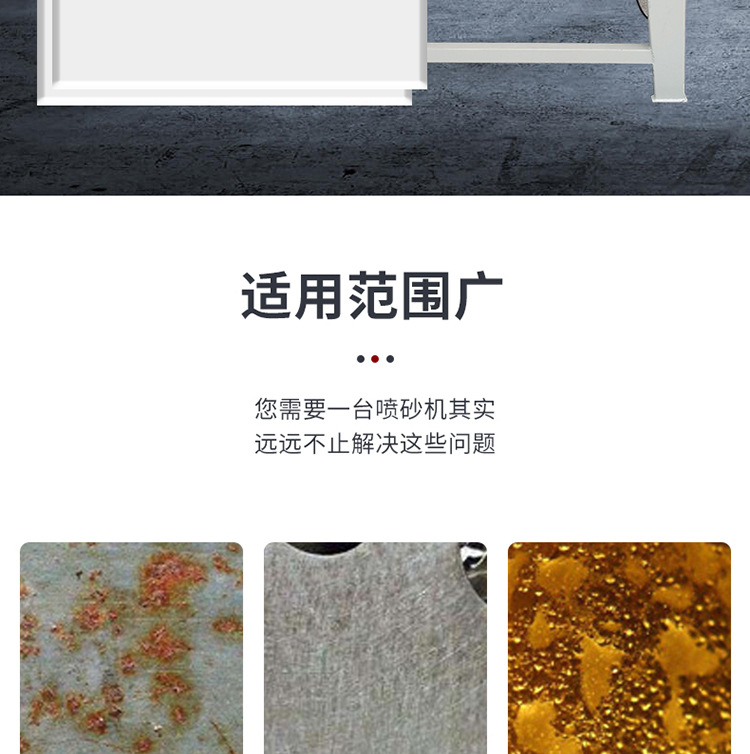 9. 喷砂机可以很容易的处理凹槽,凹等难以接触的部位,多种粒度的磨料可以选择使用;