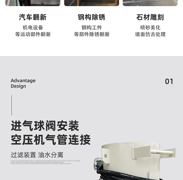 4,使用国外进口耐磨碳化硼喷砂枪.