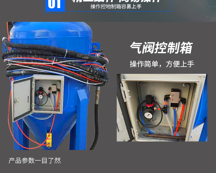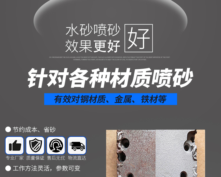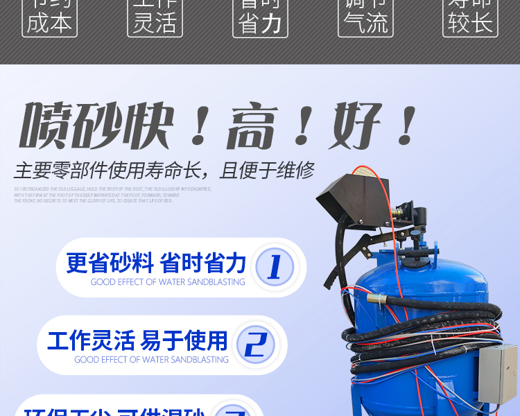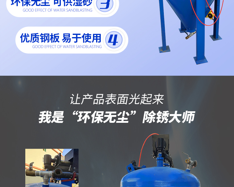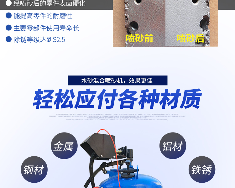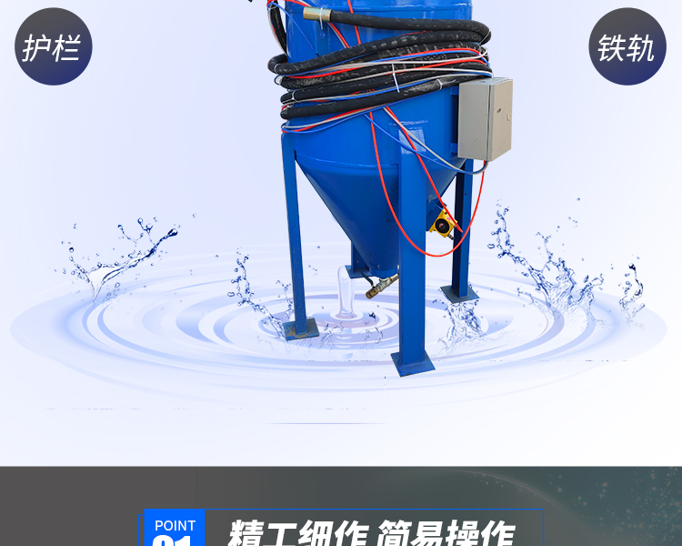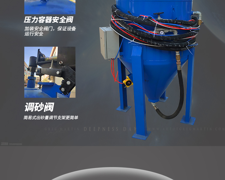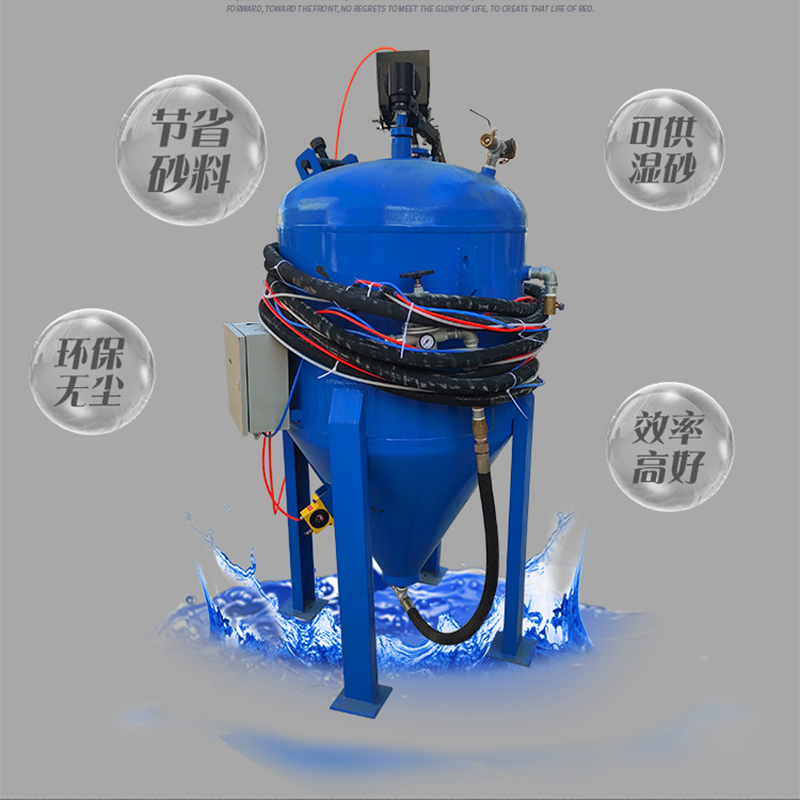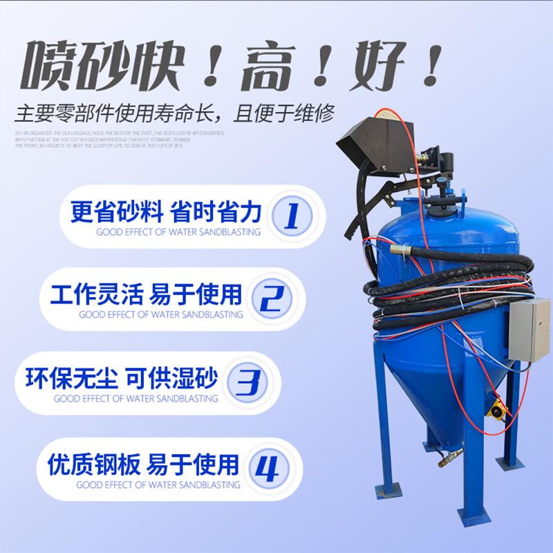 本机是利用压缩空气形成的压入式工作系统、以水、磨料为介质对零件进行喷射加工的设备。