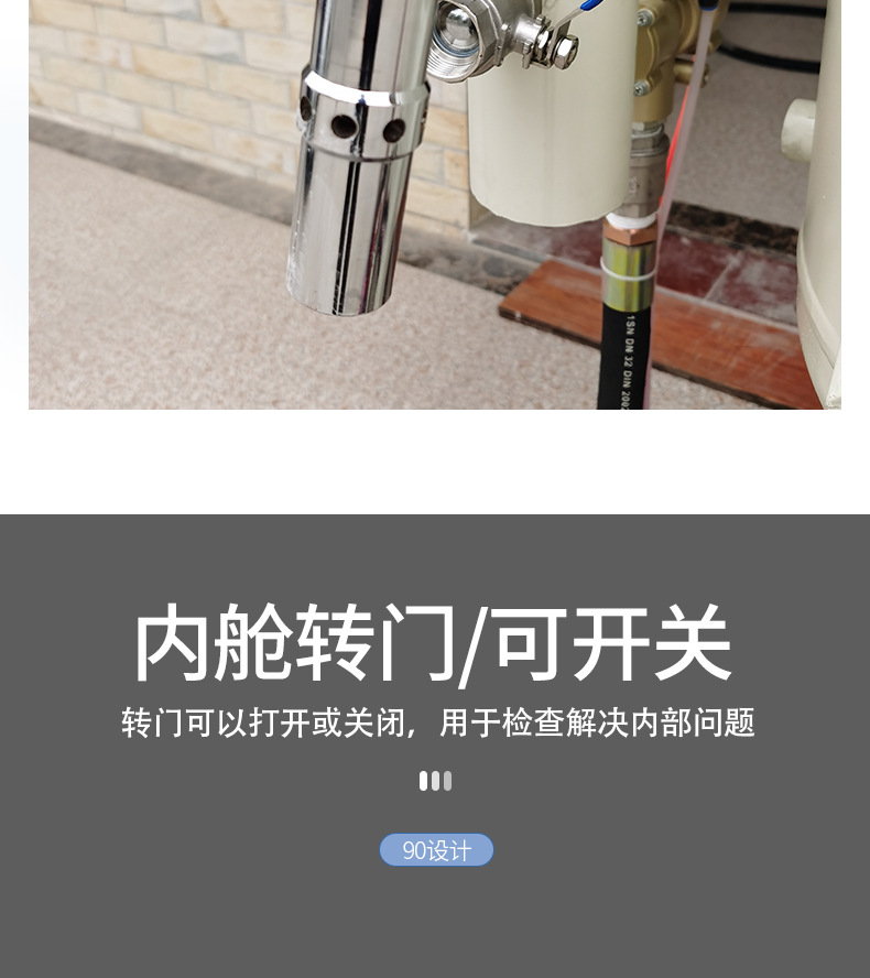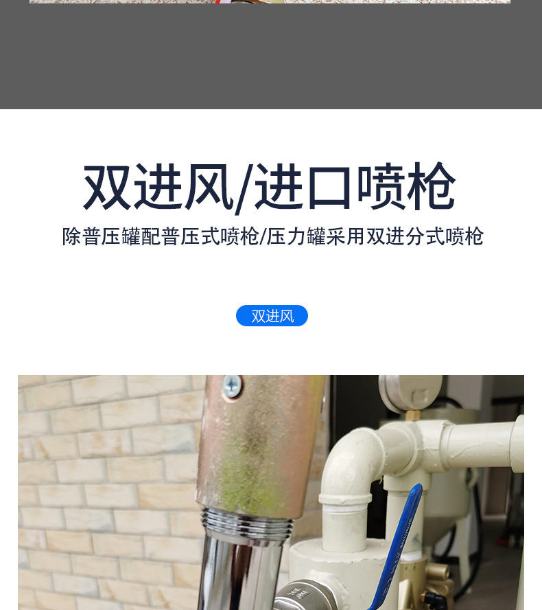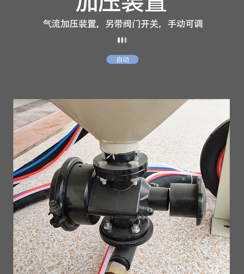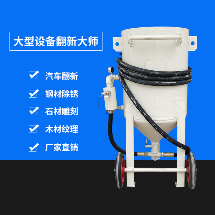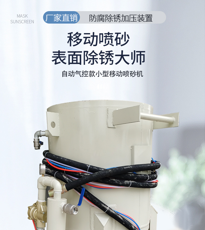 (如气控喷砂机只需喷砂工一人操作即可,喷砂作业时打开手边的控制开关开始喷砂,停止操作时也只需按一下手边的控制开关即可停止出砂)