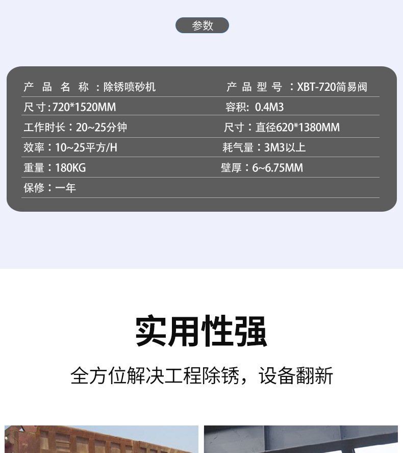 喷砂机主要技术参数: