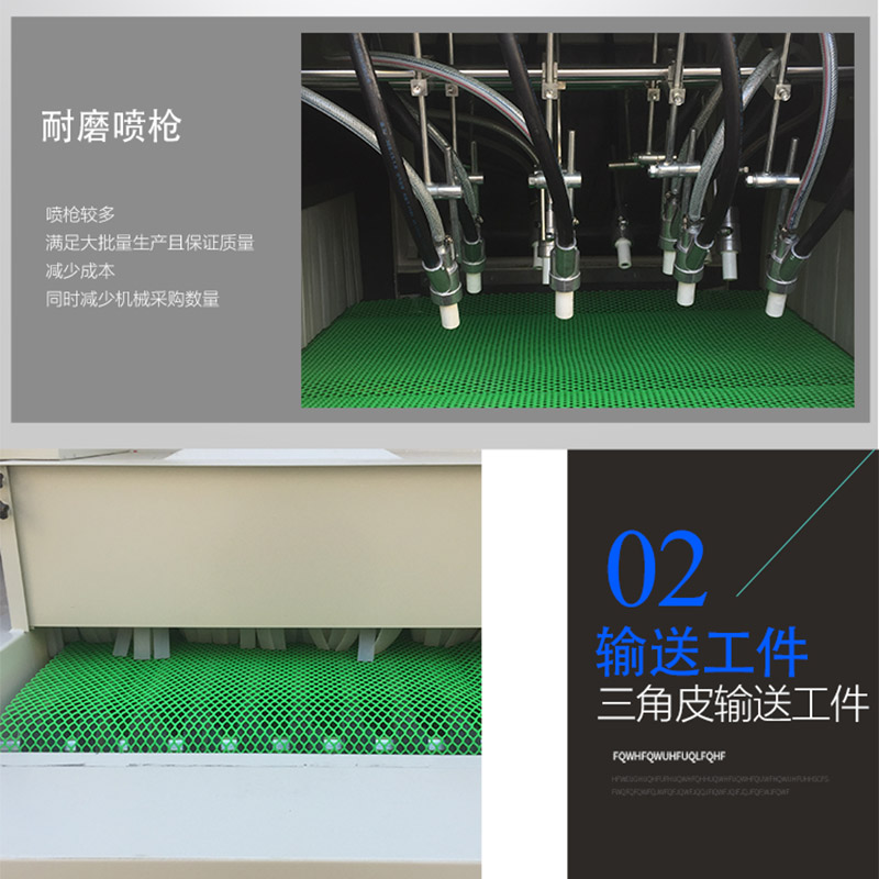 | 产品名称:电脑键盘输送式自动喷砂机 | 设备外形尺寸:3500*1200*3200mm |