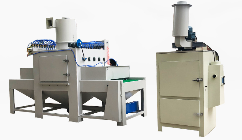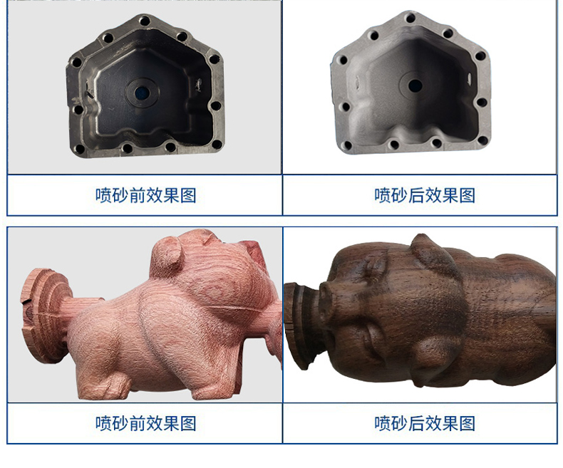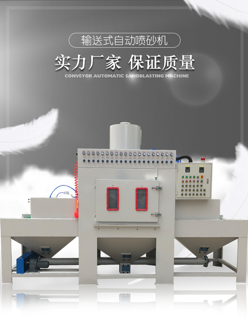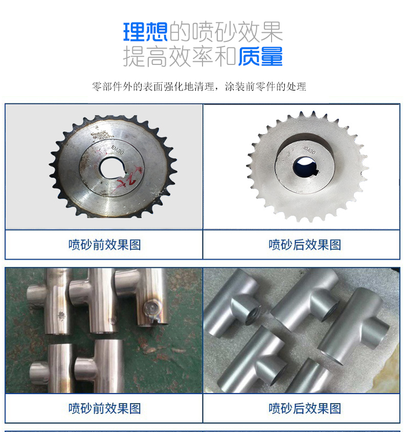 1、可全天候作业,不受外界环境干扰。操作简单,效率较高,可根据不同的工艺要求更换不同粒度的砂料(16#~280#刚玉砂,0.1~0.6MM钢丸),砂粒回收采用国外先进的蜂窝技术,自动循环使用,节约成本。