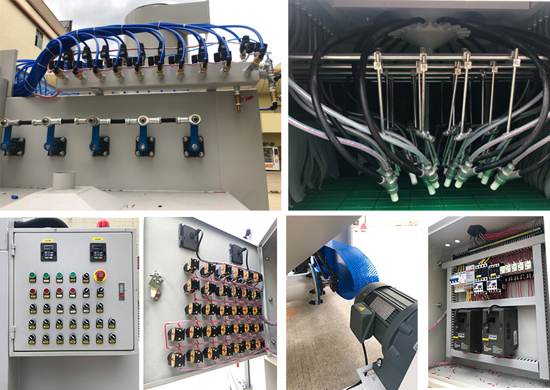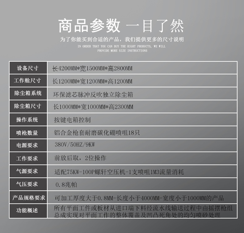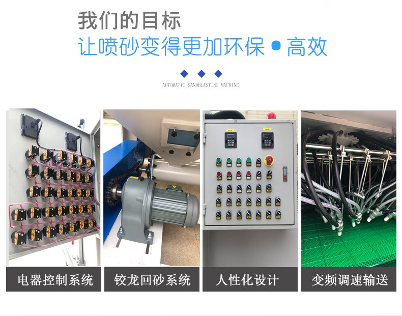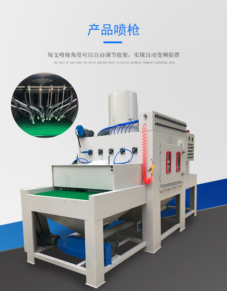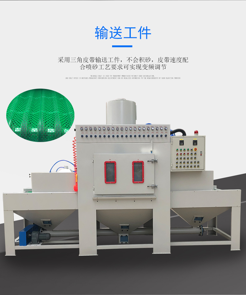 2、工件输送速度与喷枪摇摆速度根据工件的工艺参数由变频器无级调速,达到满意的喷砂效果。