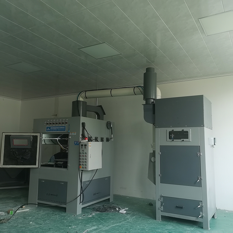 常州市某XX新材料科技有限公司现场安排转盘式自动喷砂机, XBT-1515-7A 手自一体,主机结构采用 2.5MM-10MM 钢板焊接而成.