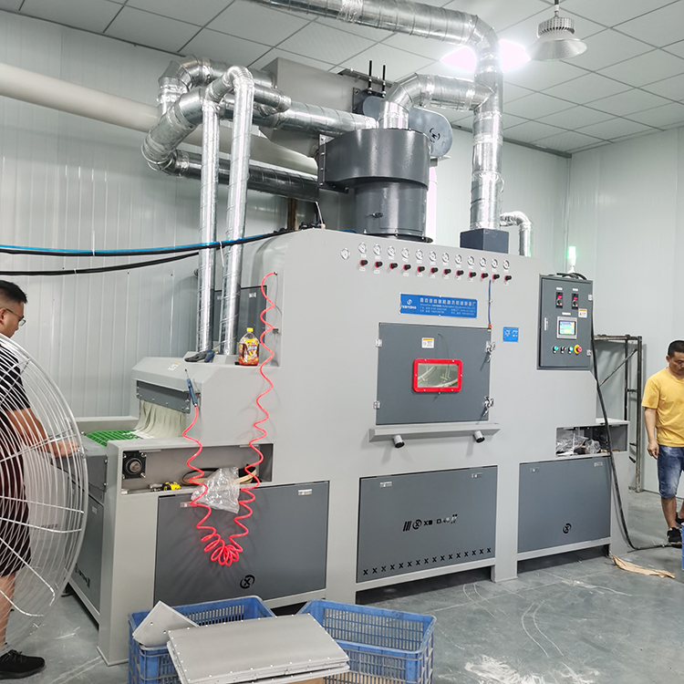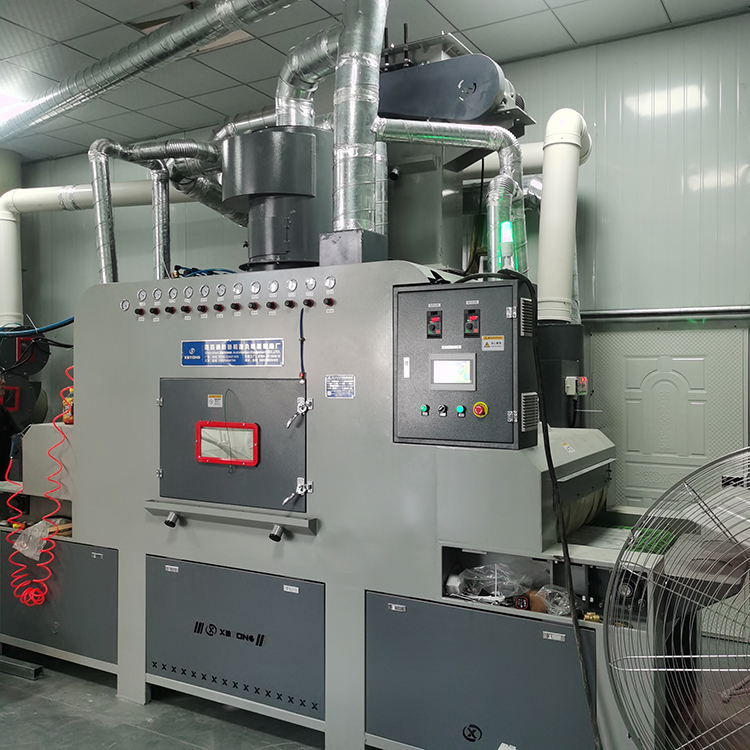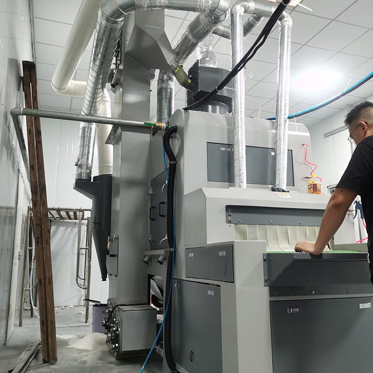 湖北xx金属表面处理有限公司 铝板,铝制品,铝压件,喷砂氧化处理,输送式自动喷砂机 XBT800-12A 水除尘型。 主机结构采用 2.0MM-10MM 钢板焊接而成。