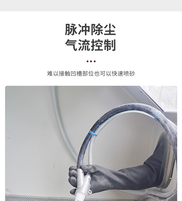 9. 喷砂机可以很容易的处理凹槽,凹等难以接触的部位,多种粒度的磨料可以选择使用;
