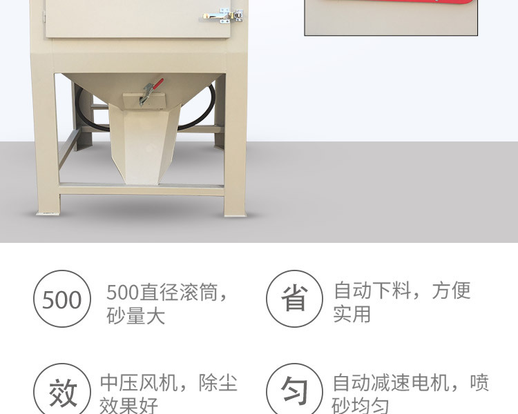 1、操作简单,效率较高,可根据不同的工艺要求更换不同粒度的砂料,砂料自动循环使用,节约成本。