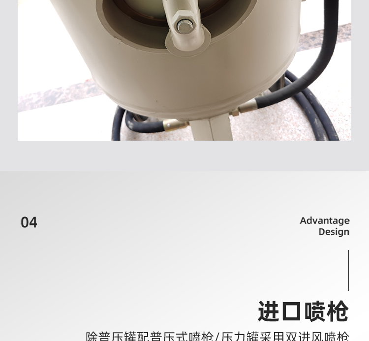 4,使用国外进口耐磨碳化硼喷砂枪.