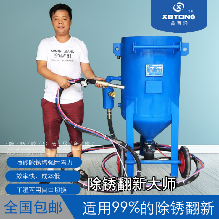 (如气控喷砂机只需喷砂工一人操作即可,喷砂作业时打开手边的控制开关开始喷砂,停止操作时也只需按一下手边的控制开关即可停止出砂)