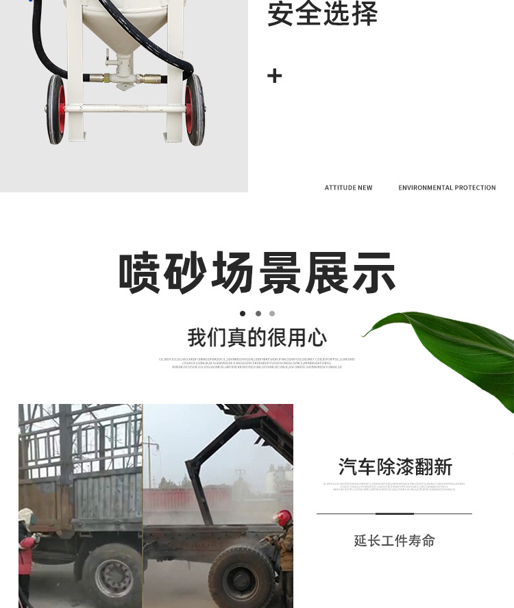 (如气控喷砂机只需喷砂工一人操作即可,喷砂作业时打开手边的控制开关开始喷砂,停止操作时也只需按一下手边的控制开关即可停止出砂)