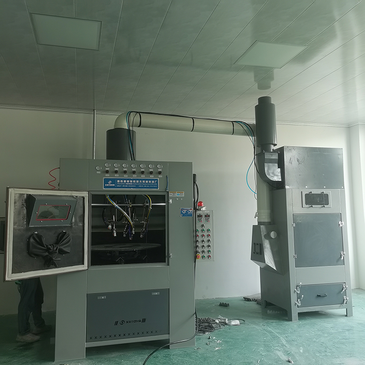 常州市某XX新材料科技有限公司现场安排转盘式自动喷砂机, XBT-1515-7A 手自一体,主机结构采用 2.5MM-10MM 钢板焊接而成.