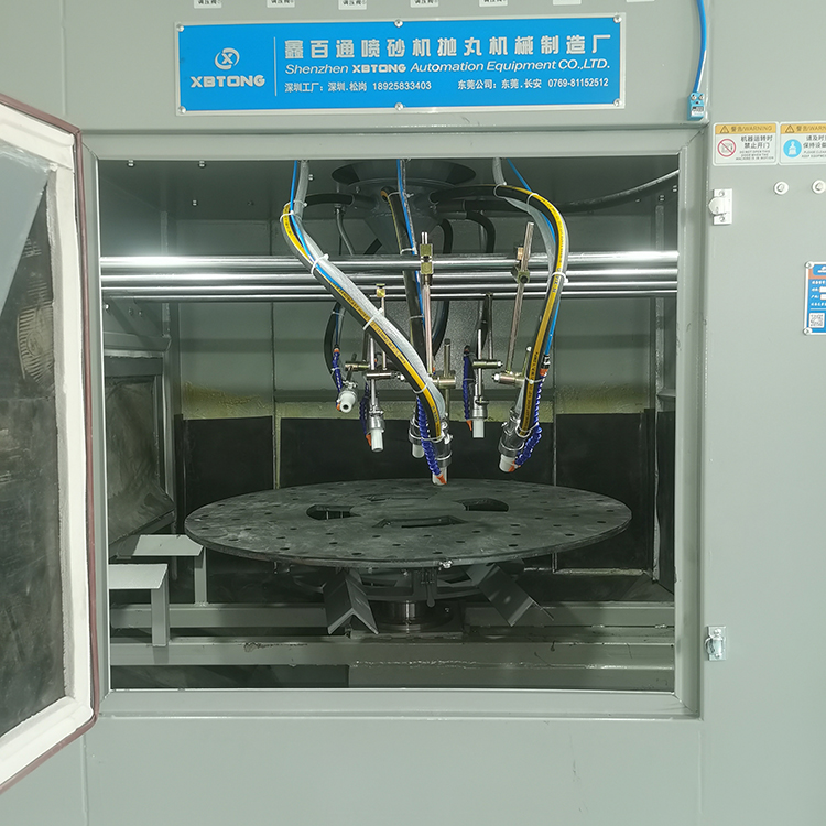 | 转盘式自动喷砂机 XBT-1515-7A 手自一体, | 主机结构采用 2.5MM-10MM 钢板焊接而成。 |